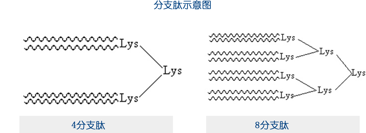 根基赖氨酸的层级个数,复合抗原肽(maps)可分为:2分支肽、4分支肽、8分支肽、16分支肽等。